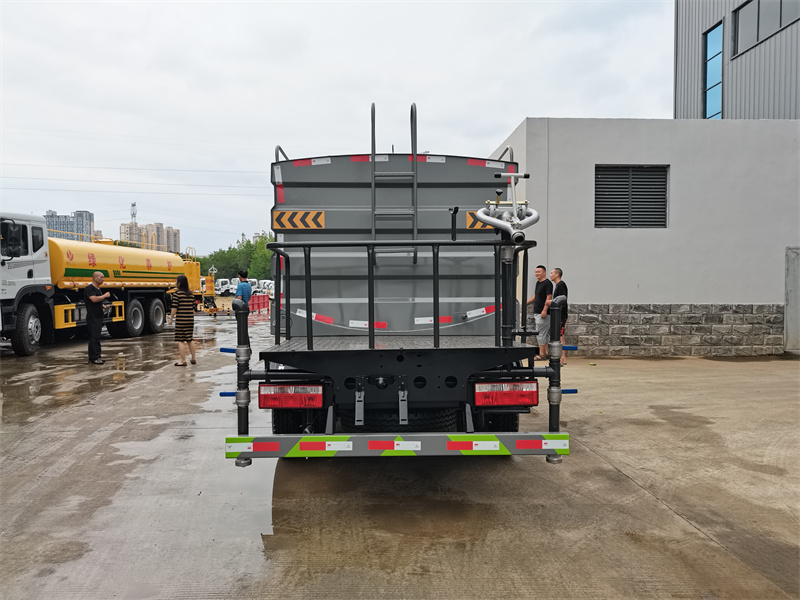 東風(fēng)7方霧炮灑水車產(chǎn)品配置 1.底盤配置: 發(fā)動機玉柴 140 馬力,萬里揚 6 檔變速箱,2T 前橋,3.5T 后橋,7.00 鋼絲胎, 軸距 3308,氣剎,ABS,空調(diào),電動門窗,中控鎖,雙層大梁 。 2.上裝配置: 1、罐體約為 7 方 2、邊燈帶電,罐體尾部上方標(biāo)配 2 個紅色示寬燈 3、標(biāo)配前噴為鴨嘴直沖,標(biāo)配后對沖,可根據(jù)需求來調(diào)整對沖位置 4、花紋防滑平臺,炮筒后蓋為定制型螺栓卡扣 5、前噴、后對沖、后灑、側(cè)噴,綠化高炮球閥均采用 50 大通徑不銹鋼球閥 6、新式軸承式水炮,更加耐用 7、40-50 型水泵 8、防腐法蘭墊片 9、鋁制后灑,不易炸開 10、罐體自動焊(美國林肯焊機及電源),拼板自動焊接,封頭環(huán)縫焊接, 無氣孔,焊縫美觀 11、側(cè)護(hù)網(wǎng)、后保險杠、均為螺栓連接方便拆卸維修方便。 12、塑料擋泥板,替代鐵擋泥板,更加輕便,用螺栓連接,方便拆卸。 13、前部、后部主管連接處為 6 孔圓法蘭不易沖墊