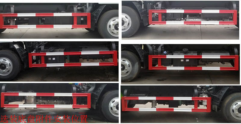 該車專用裝置為高壓泵,自動卷盤,噴槍,主要用于城市道路,非機動車道,人行道,公園路面,及管道疏通、堵塞物沖洗、護欄養護作業;ABS型號/廠家:ABS/ASR-12V-4S/4M/襄陽東風隆誠機械有限責任公司;隨底盤選裝駕駛室,選裝底盤選裝燃油箱,電瓶,尿素罐,儲氣筒左右安裝位置;側、后防護材料均為:Q235碳鋼,側防護連接方式為:螺栓連接,后防護連接方式為:焊接連接,后部防護截面尺寸(mm):100×50,后部防護離地高度(mm):410.選裝后部樣式.后部作業燈僅在作業時開啟,車輛行駛過程中不可開啟.