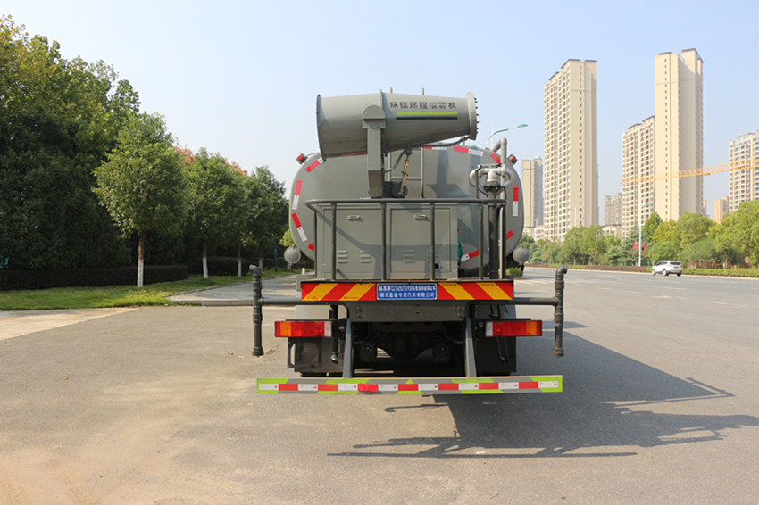 灑水車上裝配置:罐體采用5mm厚武鋼集團(tuán)供應(yīng)的罐車專用板材制作,容積:20立方;罐內(nèi)3道防浪隔板具有防波作用,減低罐內(nèi)液體的沖擊。配備國(guó)內(nèi)大功率灑水車專用水泵,可自吸自排,引水時(shí)間<15min,流量60m3/h,揚(yáng)程90米。東風(fēng)天龍灑水車其它專用部分標(biāo)配為:前沖、后灑、側(cè)噴、后工作平臺(tái)、360度可調(diào)節(jié)綠化水炮,水泵垂直吸程≧7米,前沖灑水寬度≧16米,綠化水炮射程≧35米,自流閥、濾網(wǎng)、消防接口(可連接消防栓取水,可作應(yīng)急消防用)。罐前量管(觀察罐內(nèi)水位)、罐后爬梯、罐上罐口帶簡(jiǎn)易護(hù)欄、罐側(cè)雙炮筒、6米長(zhǎng)4寸鋼絲塑膠管兩根,罐體表面雙層油漆工藝,防銹、耐腐蝕,其余有廠家標(biāo)配。可選擇加裝加裝藥盤、氣動(dòng)控制閥、噴藥設(shè)備、罐內(nèi)防腐等。