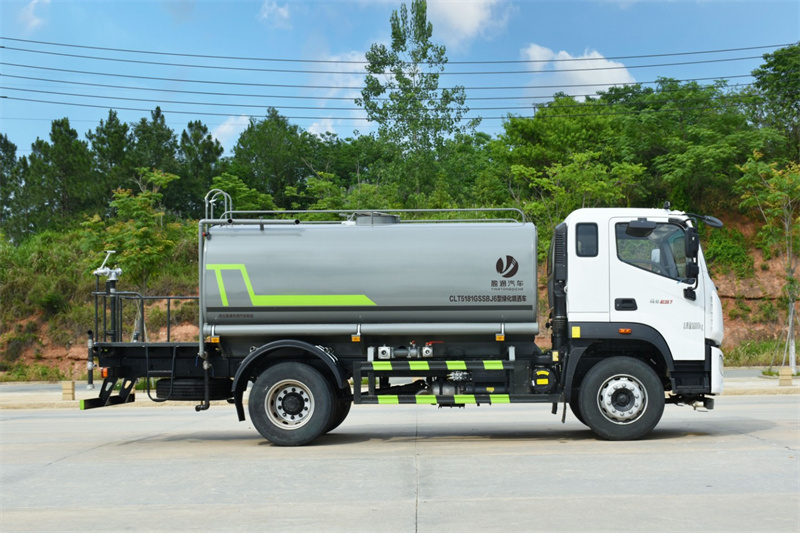 15方灑水車產品主要技術參數 序號 名稱 型號、規格 1 整車型號 CLT5183GPSEQ6A 型綠化噴灑車 2 發動機型號 D4.0NS6B195 3 發動機馬力/功率 康明斯 195 馬力/143KW 4 發動機排量 4000ML 5 變速箱 法士特 8 檔(帶高低檔) 6 輪胎規格 10.00 鋼絲胎 7 軸距 4500 8 總質量 18000KG 9 整備質量 7300KG 10 額定載質量 10505KG 11 整車尺寸(長×寬×高) 8.45*2.5*3.2 12 罐體容積 16 方 13 燃料種類 柴油 14 排放標準 國六 15 水泵型號 60/90 16 罐體材質 Q235 碳鋼
