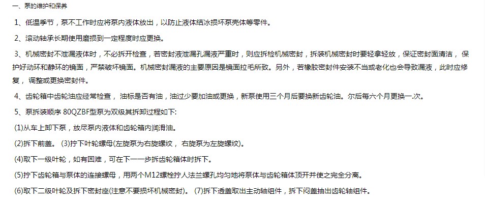 灑水車用水泵注意事項:
