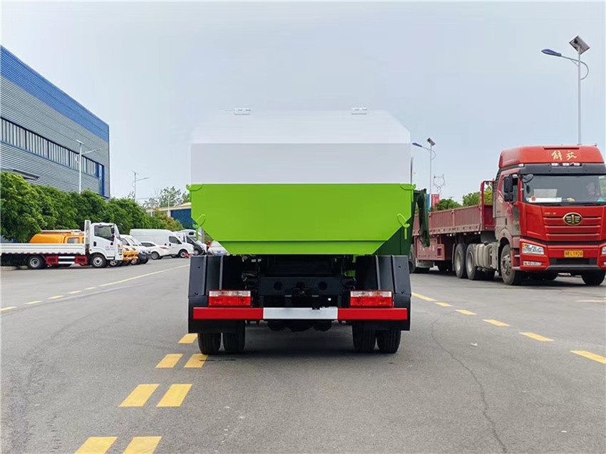 容積4~5立方米,邊三底四碳鋼材質,國產液壓系統,雙杠液壓舉升自卸,駕駛室外操作,掛桶提升機構,后門液壓開啟。