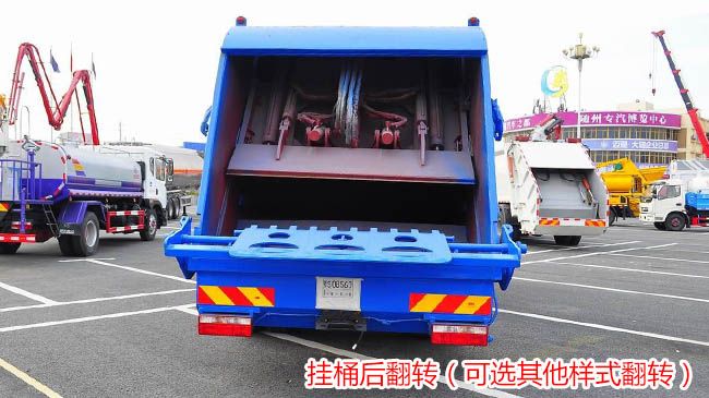 普通垃圾車的專用功能只能處理自己適合的垃圾箱,如掛桶垃圾車能夠自裝卸掛桶垃圾桶,擺臂式垃圾車可以處理擺臂式垃圾箱,但對其他垃圾箱卻無法進行自動裝載,但是垃圾壓縮車后反轉樣式功能讓其能處理各種各樣的垃圾箱,比如掛桶式后翻轉,擺臂式后翻轉,三角斗后翻轉,落地都后反轉,都能對應上不同的樣式。