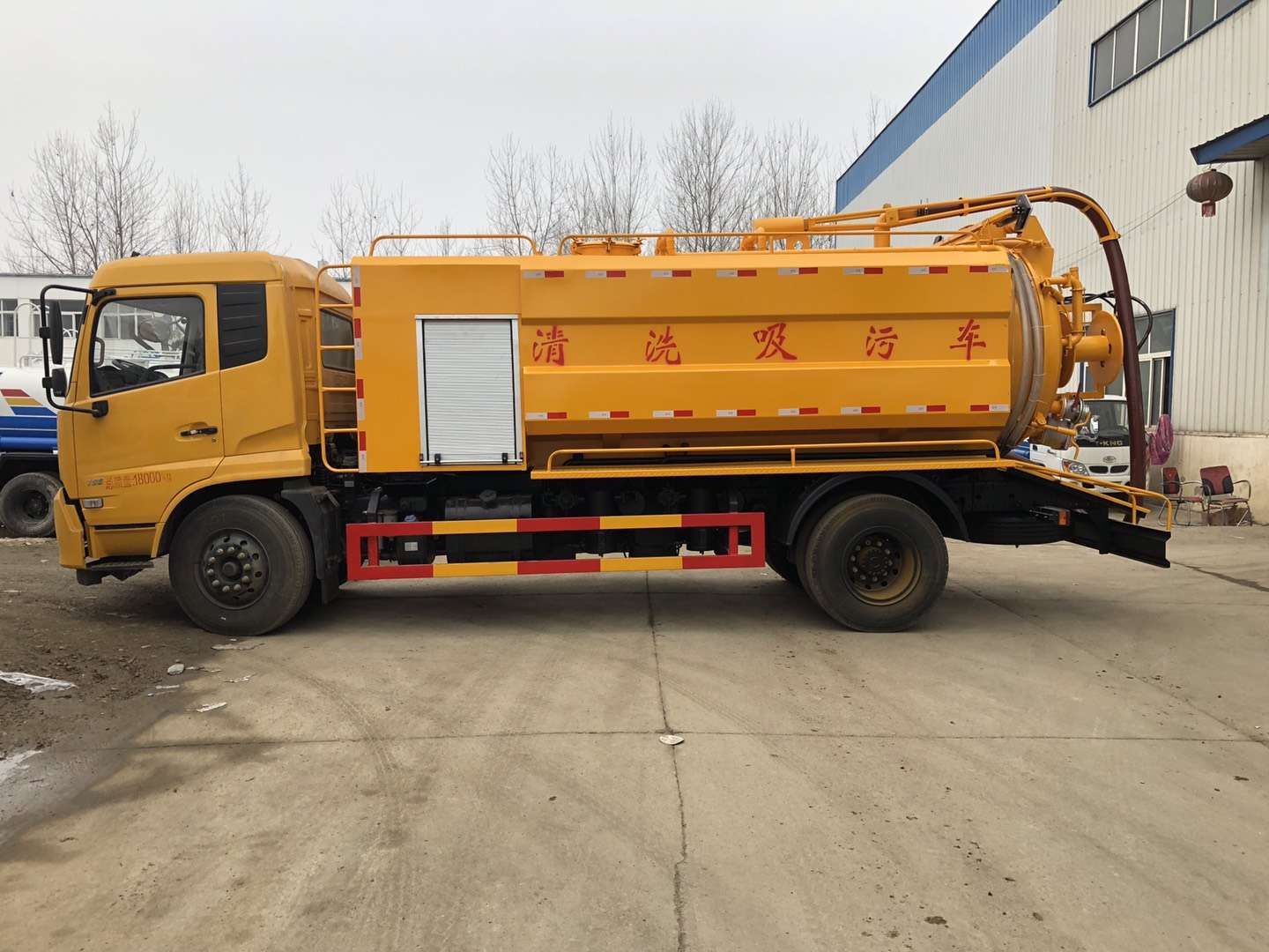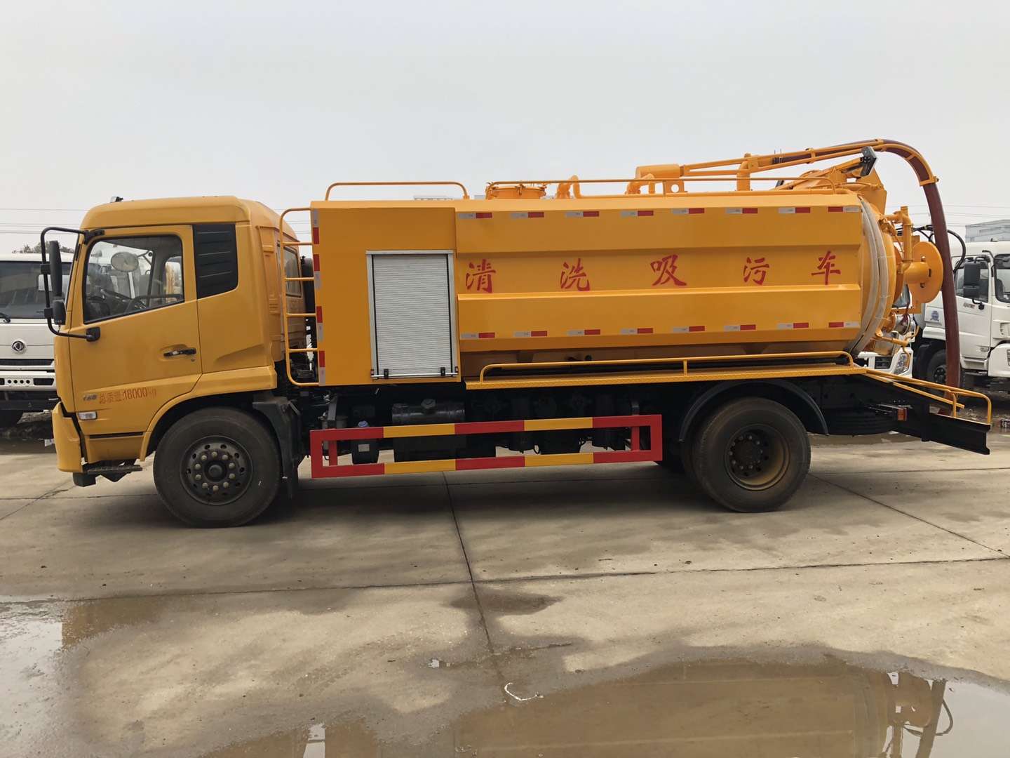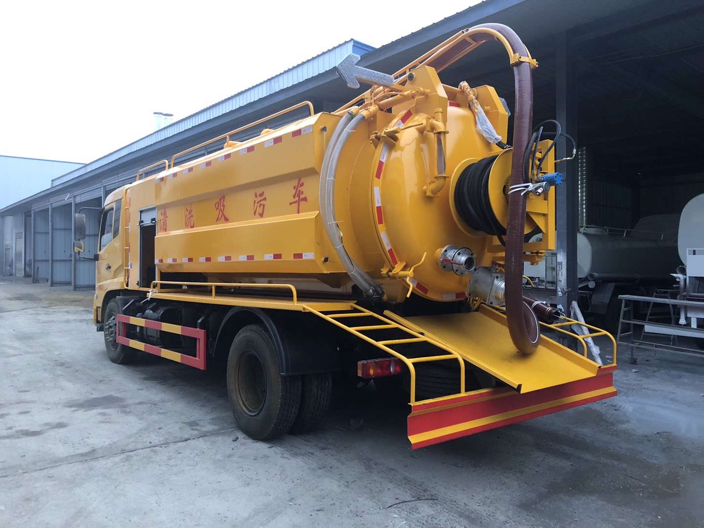 罐體容積9立方,采用武鋼優(yōu)質(zhì)鋼板制作(6個厚)采用意大利中冷型真空泵,罐體上部帶液壓吸污吊桿(可360度旋轉(zhuǎn),遙控控制)配備一根10米吸污管,尾部一個150排污球閥,帶一個100的自流口,水箱容積4立方,配備德國品孚215L高壓泵,22兆帕,帶60米19號高壓管,帶10個組合噴頭,罐體可以液壓舉升,后大蓋可開啟,帶4個鎖緊裝置,帶箭頭燈,LED夜間作業(yè)燈,其他標(biāo)配。