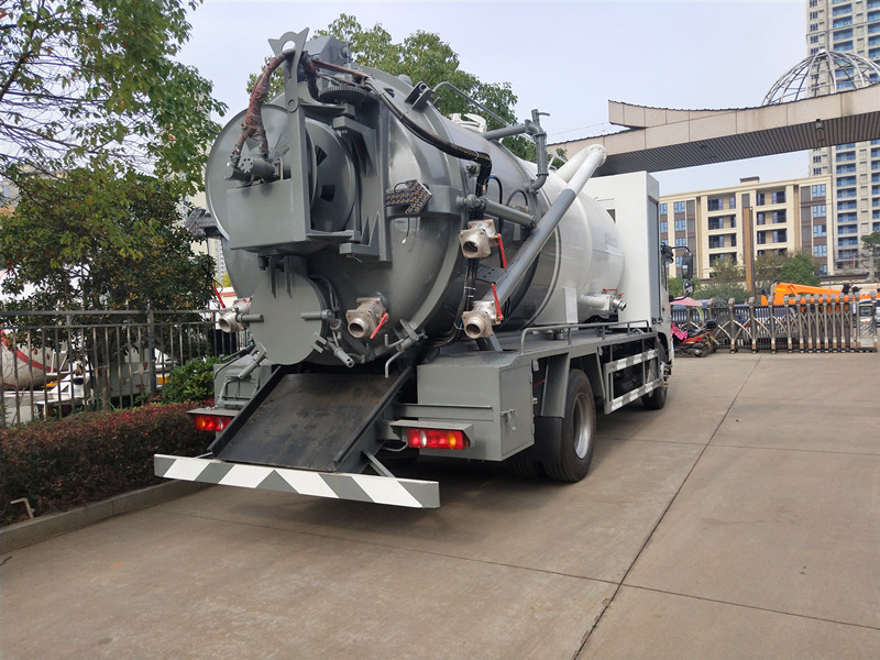 清洗罐6立方,污水罐8立方,配80米直徑19清洗管,配10個不同規格的高壓噴頭,尾部左側后置式清洗卷盤,吸污部分安排偉業牌大功率10T真空吸污泵,帶10米吸污管一根,罐體右后側安裝150排污閥,側抽上料口采用直徑115加厚型無縫管,(清水罐和污罐)頂部安裝三爪干灰蓋,加大工具箱,水污互通。