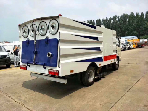 操縱箱在駕駛室,各系統電氣集中控制,操作方便。外觀造型電腦設計,高位側裙,曲面過渡,整體協調勻稱;本車由底盤,副發動機,風機,電磁控制閥,垃圾箱,水箱,吸盤,掃把,噴水系統,液壓系統,電控系統等組成。