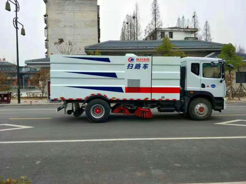 清掃車上裝配置:本洗掃車采用解放型國五二類底盤改裝,加裝康明斯170馬力副發動機、北玻臺信大功率耐磨免維護離心風機、16MPa高壓水泵、8.5/9.5立方米清水箱、7立方米垃圾箱、左右立掃、帶噴水桿的寬吸嘴、低壓沖洗系統、垃圾箱自潔,掃盤降塵系統,液壓系統、專用裝置電控系統和副車架等改裝而成。