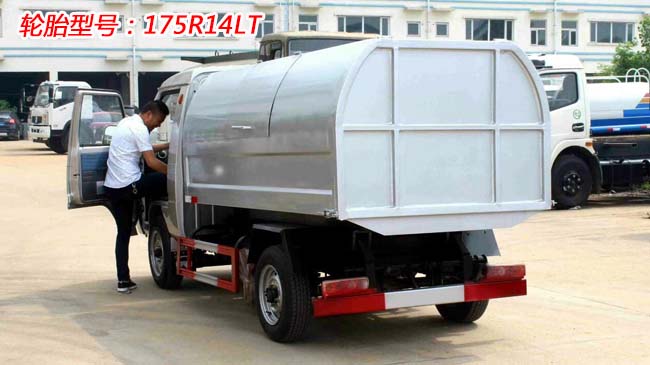 凱馬密封式垃圾車底盤配置:后雙輪,柳州五菱87馬力,5檔變速箱,175R14LT真空胎,方向助力,ABS