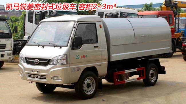 1、凱馬3立方密封垃圾車,專用部分由垃圾廂、密封頂蓋、多路換向閥、液壓系統等組成。