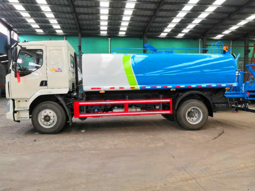 具體配置:東風專用底盤,國六12方灑水車,康明斯170馬力發動機,玉柴180匹馬力發動機,法斯特8檔變速箱,1000R20輪胎。專用部分。帶前沖、后灑、側噴、后工作平臺、尾部帶綠化炮,帶自吸自排灑水泵,后工作平臺高壓水炮直沖射程25-30米(可調成:直沖狀、大雨、中雨、小雨、毛毛雨),整車帶消防接頭、自流閥。附送2根水管,此車為正宗國六車型。