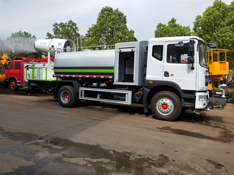 專用部分:帶前沖、后灑、側噴、后工作平臺、尾部帶綠化炮,帶自吸自排灑水泵,后工作平臺高壓水炮直沖射程25-30米(可調(diào)成:直沖狀、大雨、中雨、小雨、毛毛雨),整車帶消防接頭、自流閥。附送2根水管。加裝30型霧炮,帶8千瓦柴油發(fā)電機組,霧炮可以遙控操作。