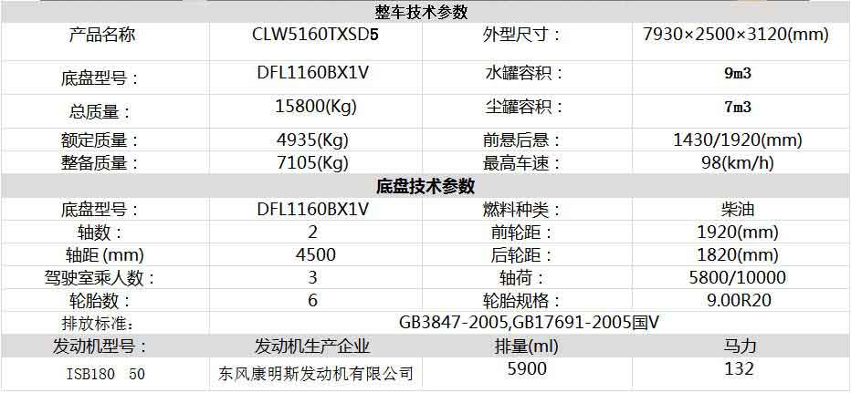 洗掃車底盤配置:采用東風(fēng)柳汽原裝底盤,5100mm軸距,玉柴180大馬力土豪金定制版,動力更強(qiáng),M31A四點全浮駕駛室,采用國內(nèi)首創(chuàng)龍骨架結(jié)構(gòu),安全性更高,8JS75C變速箱,速比極差小,多工況適應(yīng)性更好,有效達(dá)到動力性和經(jīng)濟(jì)性的完美結(jié)合,車輛行駛更省油,9T/4.875后橋,9.00R20鋼絲胎,264(6)大梁,采用亞洲最大的6300噸沖壓機(jī),一次沖壓成型,內(nèi)外層緊密結(jié)合,優(yōu)于鉚接,250L鋁合金油箱,氣囊減震座椅,ABS采用WABCO牌,提高制動性能可靠性,車載終端,進(jìn)口配置空調(diào),遙控中控鎖,電動門窗。