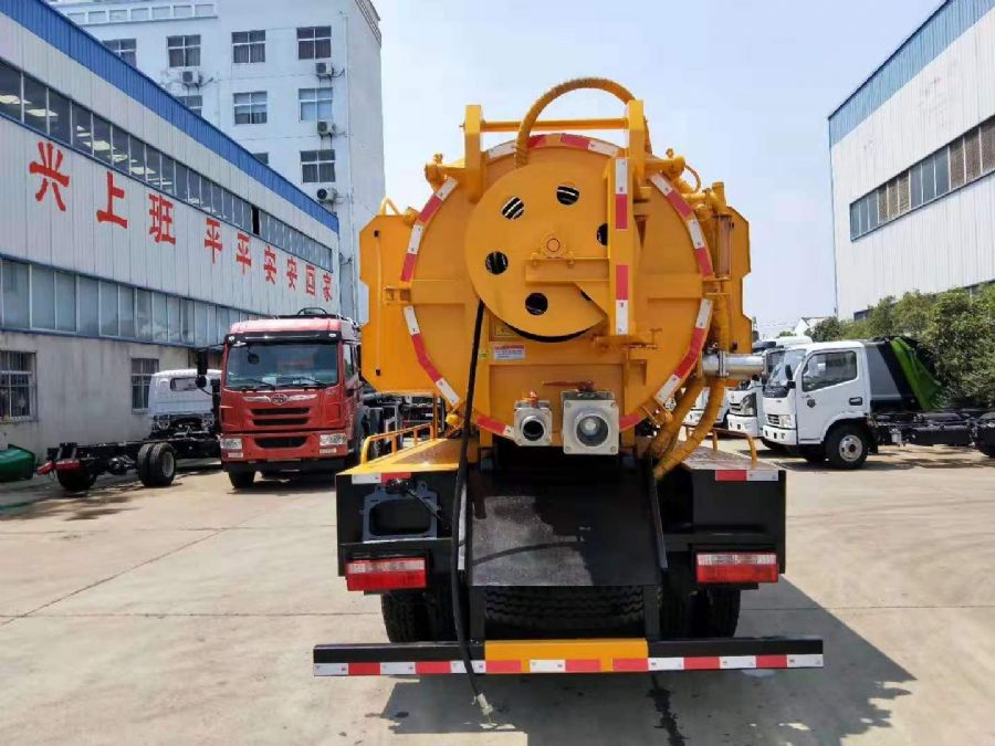 水罐3方,污罐7方,水罐采用4mm武鋼優質碳鋼制作,污罐采用6mm武鋼優質鋼板制作,配SK-9水循環泵/8噸油真空泵(根據客戶需求選裝),170流量高壓泵,24兆帕壓力,真空防溢閥,真空壓力表,視污窗,水罐邊掛接在罐體倆側(可拆卸),污罐體可液壓舉升自卸,后開蓋可液壓開啟,配60米高壓軟管,10個大小不同高壓噴頭,8米吸污管,尾部100mm吸污口,100mm排污口(可根據客戶需求加大),帶免征,環保公告!!