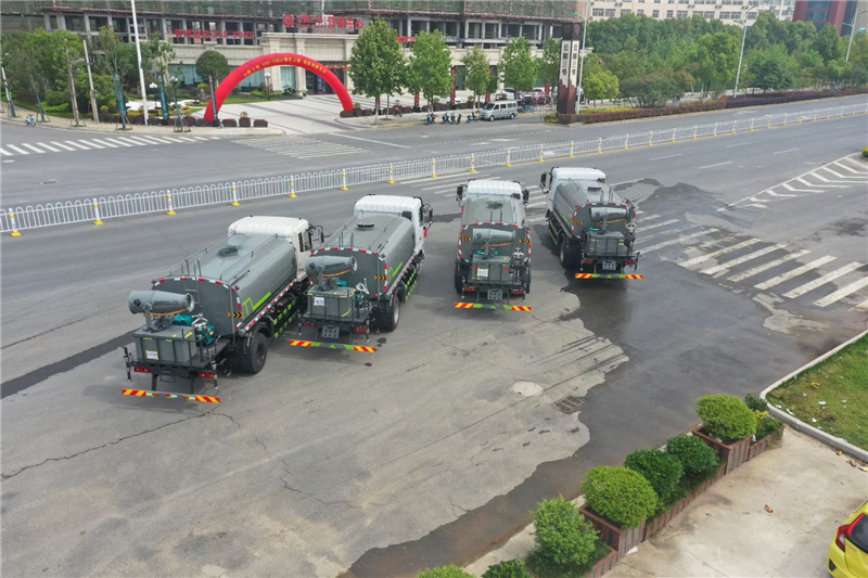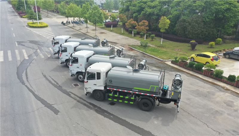 4、后噴灑;裝有兩只可噴淋后灑裝置,主要對路面進行保潔和壓塵,呈扇形噴灑時,灑水寬度可達10m以上