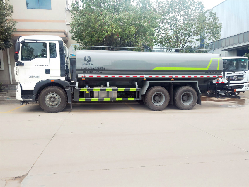 重汽20噸灑水車罐體為橢圓形或方形,采用武鋼優(yōu)質(zhì)碳鋼板制成,罐體倉內(nèi)1.5米一道隔板,具有防波防蕩作用,還可按用戶要求進(jìn)行專業(yè)的防腐防銹處理,罐體外可用發(fā)泡或巖棉加裝保溫層起保溫功能。可選裝藥盤,藥泵、高壓噴藥設(shè)備、非車帶泵動力等.、罐內(nèi)防腐防銹、多方位進(jìn)出水接頭、氣動閥、警燈等先進(jìn)設(shè)施,以滿足不同用戶需求。