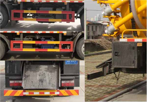 該車用于下水道排污及疏通,專用裝置:罐體、吸污泵、清洗沖刷總成.該車輛具有舉升功能,罐體外形尺寸(罐體總長×直徑)(mm):4900×1750(前面1600mm為清水罐,后部3300mm為污水罐);污水罐總容量:6.91立方米,污水罐有效容積:6.58立方米,介質:液態污物,密度800千克/立方米;清水罐有效容積:3.6立方米,介質:水,密度1000千克/立方米;清水罐和污水罐為獨立罐體,清洗功能時用清水罐,吸污功能時用污水罐,污水罐和清水罐不可同時滿載,兩罐不可同時使用.ABS型號/廠家:ABS型號:ABS/ASR-24V-4S/4M,廠家:襄陽東風隆誠機械有限責任公司;側、后防護材料均為:Q235碳鋼,側、后防護均為螺栓連接,后部防護截面尺寸(mm):120×50,后部防護離地高度(mm):380;僅采用底盤3800mm軸距改裝.隨底盤選裝駕駛室,選裝后部出口樣式,選裝側面樣式.隨底盤選裝車速89km/h.選裝油箱電瓶安裝位置.選裝后部樣式.