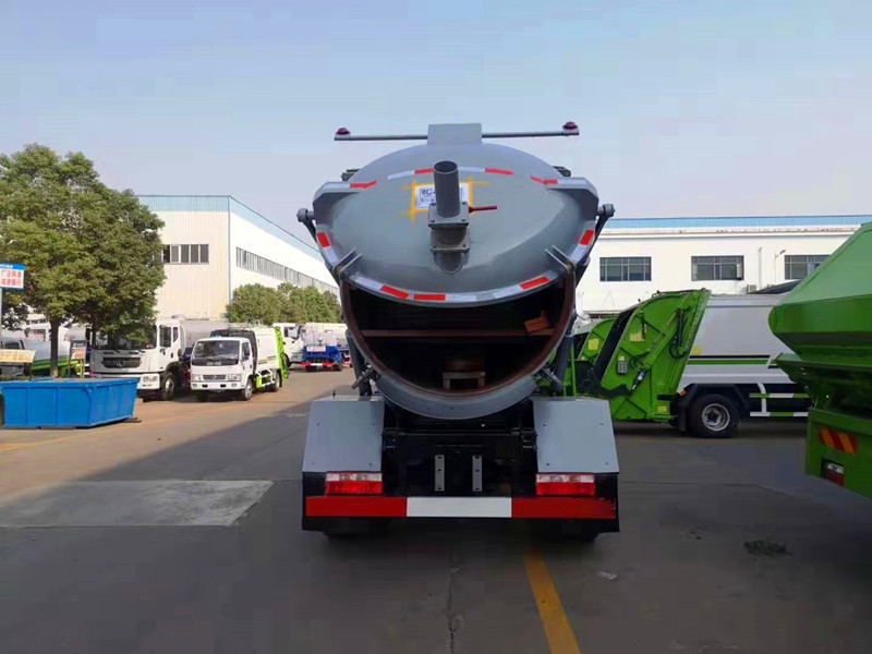 介質:餐廚垃圾,密度:800千克/立方米,罐體有效容積:8.13立方米,罐體外形尺寸(直段長×直徑)(mm):3800×1600。該車右側面配備垃圾上料裝置,用于作收集餐廚垃圾。防護材料:Q235A碳鋼,連接方式:左右側面及后下部防護均采用焊接連接,后部防護斷面尺寸(mm):120×50,后部防護離地高度(mm):400。 ABS系統型ABS/ASR-24V-4S/4M,ABS系統生產廠家襄陽東風隆誠機械有限責任公司。此整車長/軸距對應關系為(mm):6850/3800,7000/3950,7100/4050,7150/4100,7450/4400。當軸距為(3800mm,3950mm),整備質量為5600kg,當軸距為(4050mm,4100mm,4400mm),整備質量為6400kg。隨底盤選裝駕駛室。