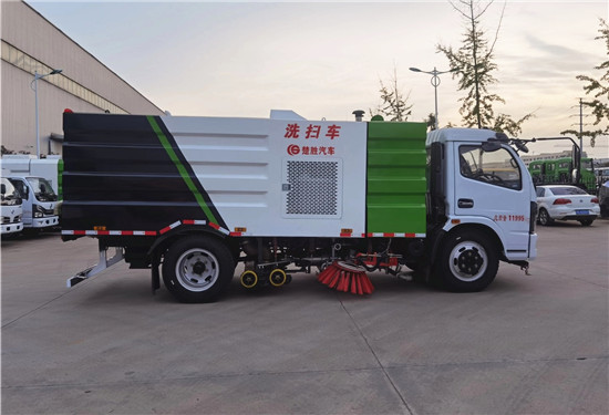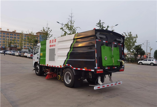 洗掃車改裝部分具有路面清洗、路面清掃、路緣清洗、路緣和路緣石立面洗刷、低壓沖洗、噴霧除塵等多功能;選擇“全洗掃”模式清洗廣場和路面,清洗效率高效果好,洗凈率達(dá)90%以上,選擇“左洗掃”或“右洗掃”模式清洗路面和路緣、洗刷路緣石立面;需要進(jìn)行路面清掃或路面保潔作業(yè)時,可選擇掃路模式;需要噴霧除塵時,可開啟噴霧裝置,進(jìn)行噴霧除塵作業(yè);還可以像灑水車一樣對路面進(jìn)行低壓沖洗作業(yè)。