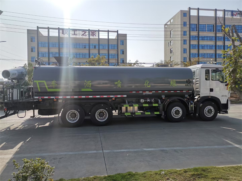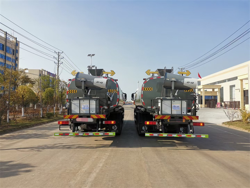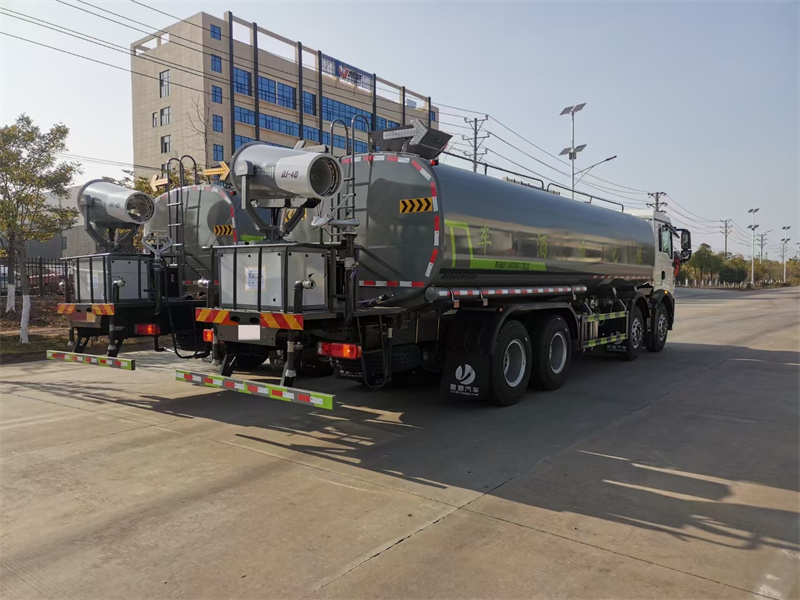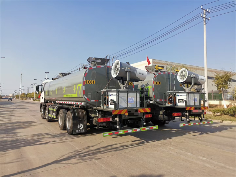 縱昂牌CLT5311TDYZZ6型多功能抑塵車標配前噴(鴨嘴 ) 、后 對沖、后灑、側(cè)噴、后置式工作平臺,平臺上配置綠化水炮(可 360°旋 轉(zhuǎn), 既可以調(diào)成柱狀,也可以調(diào)成霧狀),配備優(yōu)質(zhì)大功率專用灑水泵(可自吸 自 排,可從河里或池塘抽水到罐體),取力器,雜物過濾網(wǎng),消防接口,自流球閥 系統(tǒng)、取力器、球閥、濾網(wǎng)均為國家標準產(chǎn)品,主管道加粗,法蘭墊、法蘭盤 加厚,大通徑球閥。整體具備性能優(yōu)良安全可靠、效率高、流量大、維修方便 等特點。