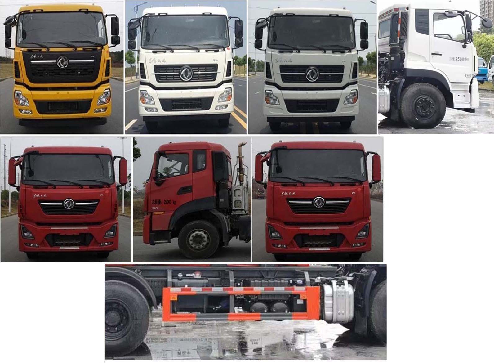 東風天龍大型勾臂垃圾車該車主要用于垃圾轉運,專用裝置為勾臂系統.整車長(mm)/軸距(mm)的對應關系分別為:9380/5350+1350,8380/4350+1350.側/后部防護材料為:Q235碳鋼,連接方式均為:螺栓連接,后部防護截面尺寸(mm):120×50,后部防護離地高度(mm):480.ABS型號/生產廠家:3631010-C2000/東科克諾爾商用車制動系統(十堰)有限公司,ABS 8/東科克諾爾商用車制動系統(十堰)有限公司,4460046450/威伯科汽車控制系統(中國)有限公司;選裝直接供電式ETC車載裝置;發動機型號/油耗值(L/100km):D6.7NS6B290/31.3,DDi75E350-60/31.7,DDi75E300-60/31.7,DDi75E340-60/31.7,D6.7NS6B320/31.3.該車安裝具有衛星定位功能的行車記錄儀.發動機D6.7NS6B290、DDi75E350-60、DDi75E300-60、DDi75E340-60、D6.7NS6B320的最大凈功率為208kW,252kW,215kW,245kW,226kW.隨底盤選裝駕駛室,隨底盤選裝后處理外形,隨底盤選裝限速裝置,限速為89km/h.