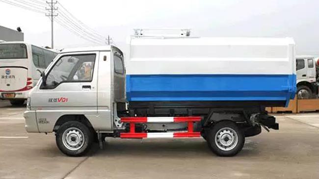 福田馭菱掛桶式垃圾車,柳州五菱61馬力,馭菱車身,1500mm寬駕駛室,5檔變速箱,165R14真空胎,帶動力轉向。
