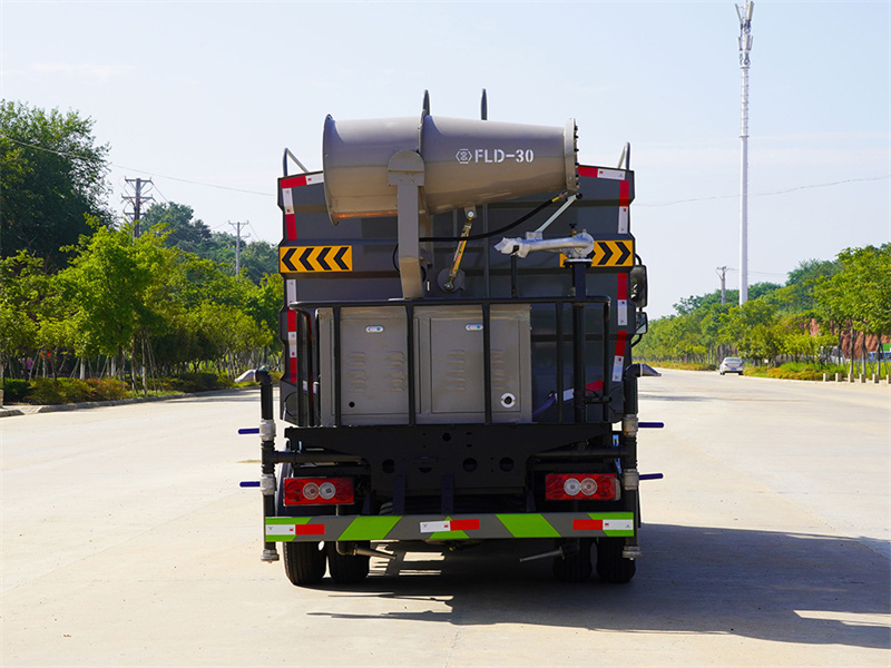 我公司產(chǎn)品標(biāo)配前噴(鴨嘴)、后沖、后灑、側(cè)噴、后置式工作平臺(tái),平臺(tái)上配置綠化水炮(可 360°旋轉(zhuǎn),既可以調(diào)成柱狀,也可以調(diào)成霧狀,更可以調(diào)成直沖狀、大雨、中雨、小雨、毛毛雨),配備優(yōu)質(zhì)大功率專用灑水泵(可自吸自排,可從河里或池塘抽水到罐體),取力器,雜物過濾網(wǎng),消防接口,自流球閥系統(tǒng)、取力器、球閥、濾網(wǎng)均為國家標(biāo)準(zhǔn)產(chǎn)品,主管道加粗,法蘭墊、法蘭盤加厚,大通徑球閥。整體具備性能優(yōu)良安全可靠、效率高、流量大、維修方便等特點(diǎn)