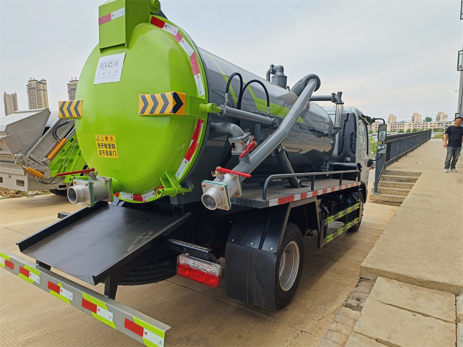 東風多利卡5方吸污車上裝配置:吸污部分:配 SK-6 或 SK-9 水循環泵,一根 8 米吸污管(帶快速接頭),工具 箱;細節部分:污罐體采用 6mm 優質碳鋼板制作,安裝洗手 裝置,防溢閥(帶過濾網),加粗型污水觀察管;尾部 1 個 150 球 閥,1 個 100 球閥,均帶出口,球閥向下傾斜,后封頭加固,后蓋可液 壓開啟,配手動鎖緊裝置。