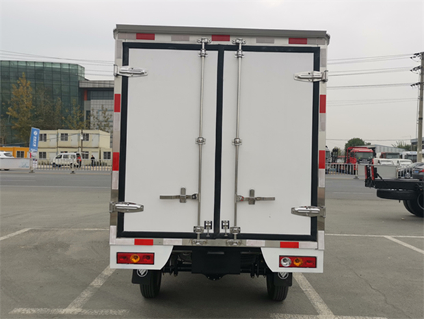 福田2米8冷藏車車廂配置:廂體采用內外優質玻璃鋼板夾保溫層制成,廂體厚度80mm,鋁合金型材包邊,鎖件為不銹鋼,地板為鋁花紋板,不銹鋼門框,鎖件,新型鋁合金型材包邊,不銹鋼包角。