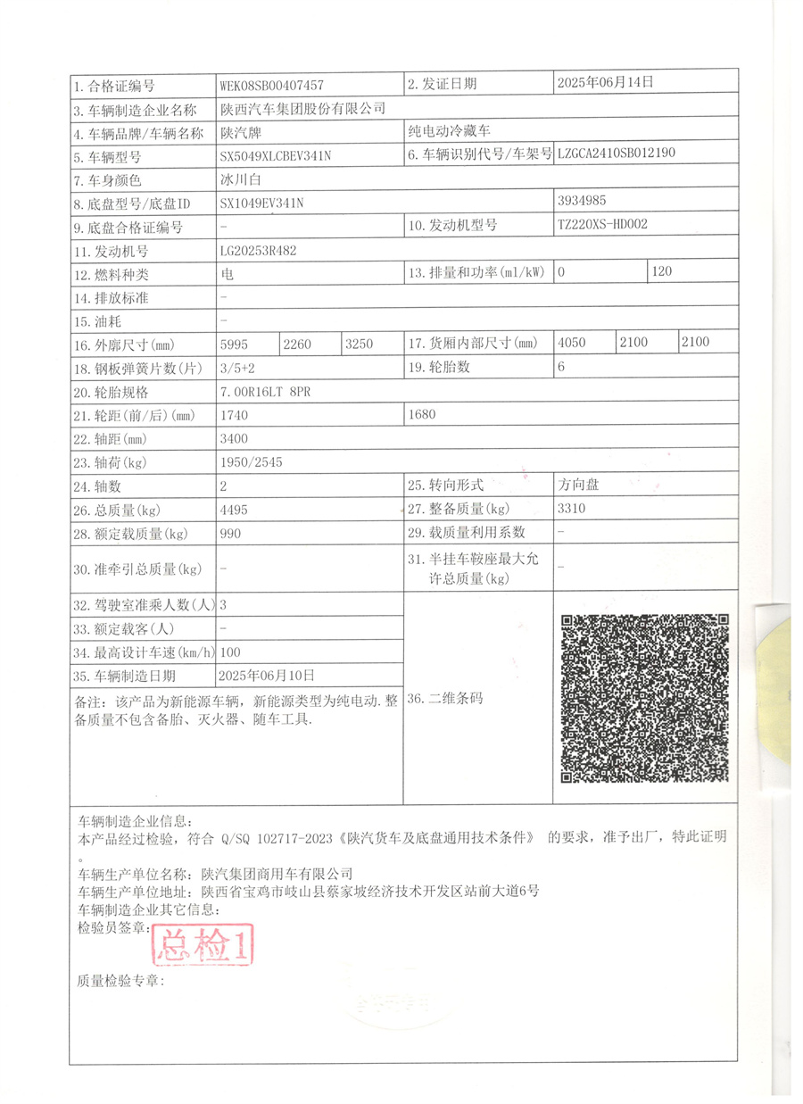 整車(chē)型號(hào):SX5049XLCBEV341N
