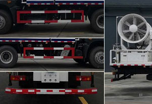 ABS型號:3631010-C2000,J ABS;ABS生產企業:東科克諾爾商用車制動系統(十堰)有限公司,焦作博瑞克控制技術有限公司;選裝描述:隨底盤選裝駕駛室;側后防護情況:左右側面及后防護勻采用焊接連接, 防護材料Q235B:后部防護裝置斷面尺寸(寬×高)50×120(mm),后部防護離地高度:490mm;專用功能及裝置:專用裝置為抑塵霧炮,用于城市或建筑工地的降塵作用;其他說明:罐體有效容積:10.8立方米,罐體外形尺寸(長×長軸×短軸)關系為(mm): 4400×2480×1710,整車長/軸距/前懸/后懸(mm)對應關系為:10350/4350+1350/1250(1450)/3400(3200) ;10350/4750+1350/1250(1450)/3000(2800); |