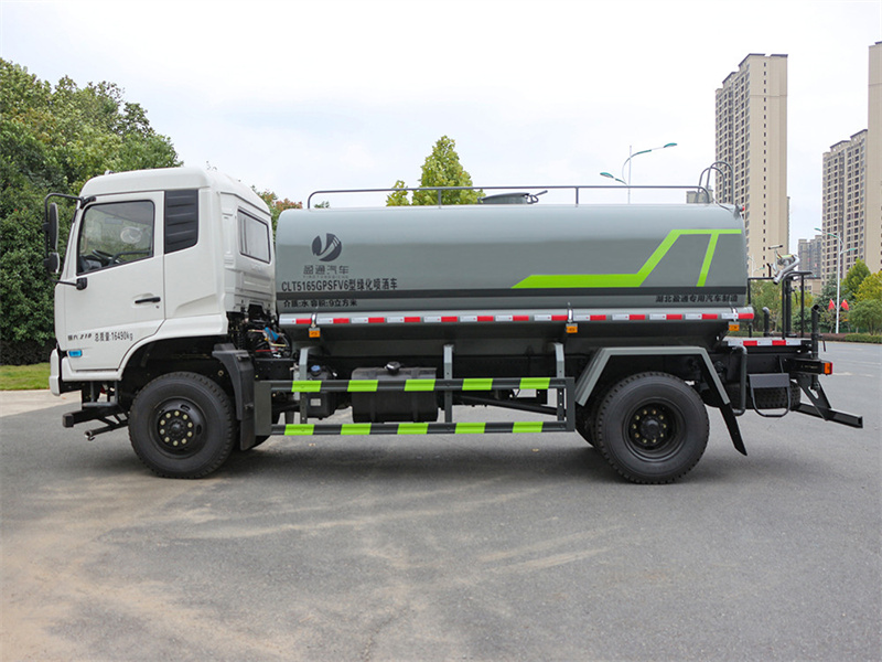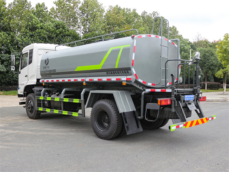 東風天錦四驅11噸灑水車產品標配前噴(鴨嘴)、后沖、后灑、側噴、后置式工作 平臺,平臺上配置綠化水炮(可 360°旋轉,既可以調成柱狀,也可 以調成霧狀,更可以調成直沖狀、大雨、中雨、小雨、毛毛雨),配 備優質大功率專用灑水泵(可自吸自排,可從河里或池塘抽水到罐體), 取力器,雜物過濾網,消防接口,自流球閥系統、取力器、球閥、濾網 均為國家標準產品,主管道加粗,法蘭墊、法蘭盤加厚,大通徑球閥。 整體具備性能優良安全可靠